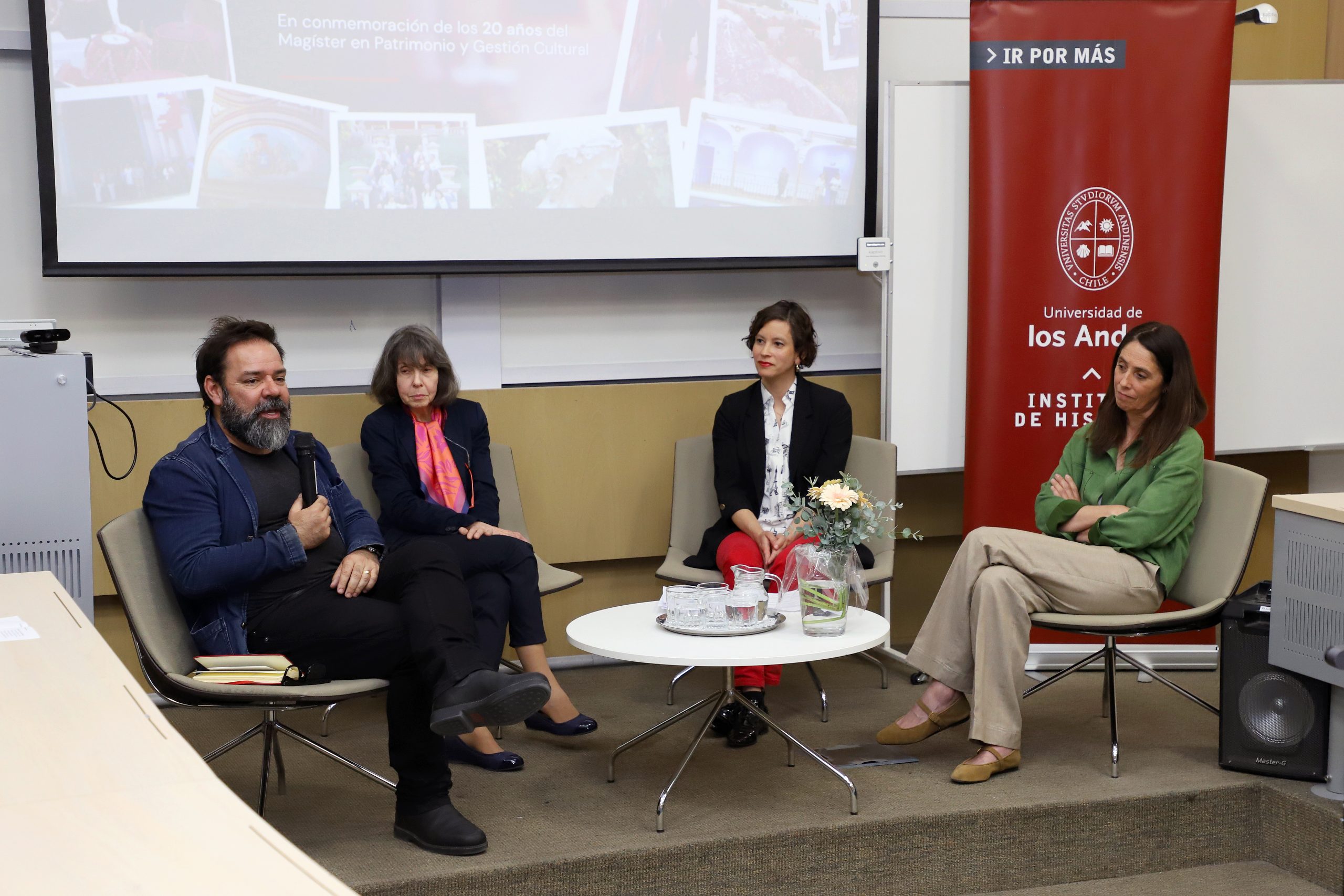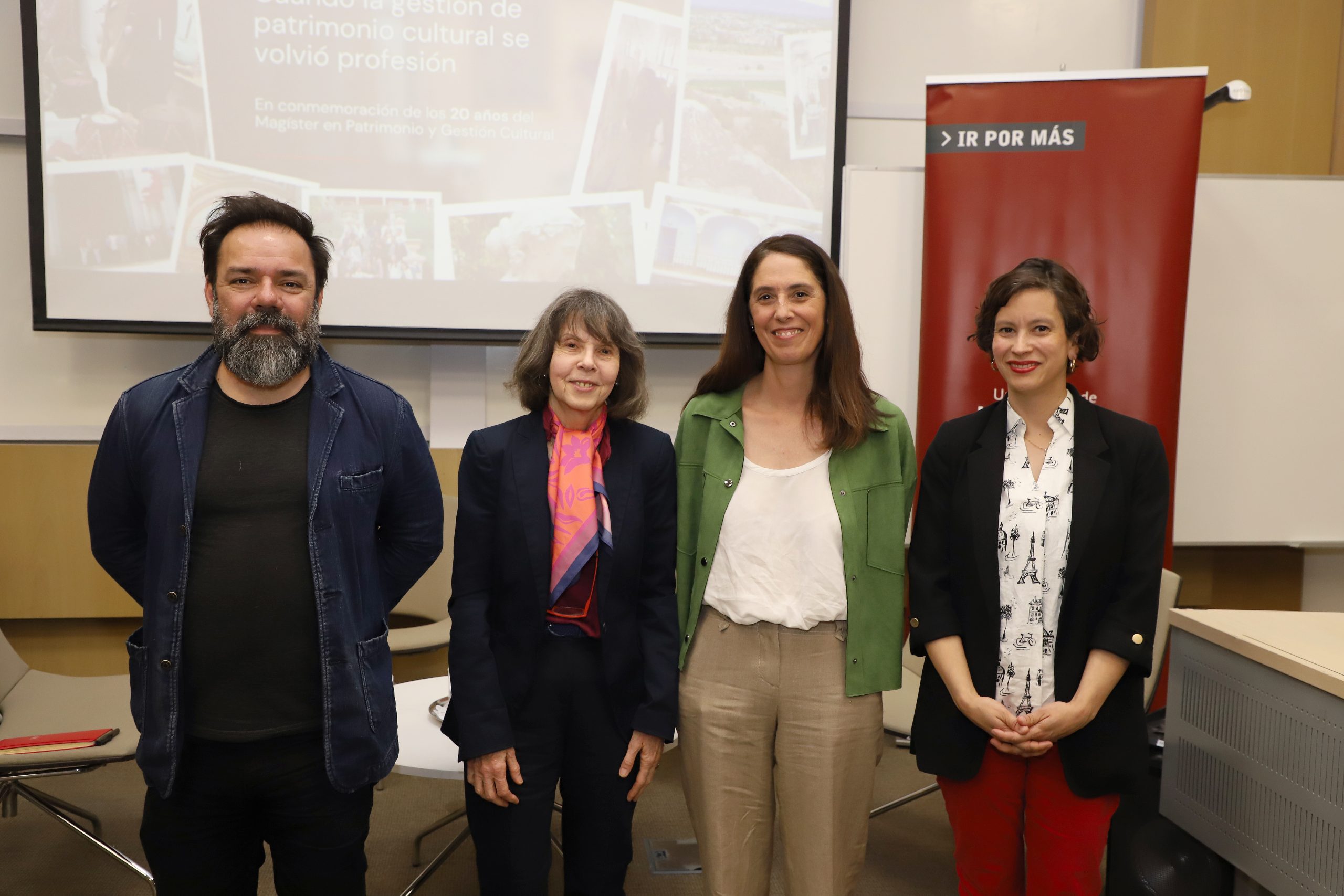 La fundadora del programa, Isabel Cruz, repasó los orígenes del magíster y el diseño curricular que —desde 2005— articuló líneas de historia y cultura material, patrimonio, gestión y un proyecto de grado que integrara teoría y práctica. Recordó cómo Francisco Javier González, junto a Hernán Rodríguez y el apoyo de Magdalena Krebs, visualizaron la necesidad de contar con profesionales capaces de enfrentar los desafíos del sector. Esa apuesta derivó en un programa pionero en el país, pensado desde el inicio como un postgrado para estudiantes con experiencia laboral previa, capaces de aprovechar de manera más profunda la formación avanzada.