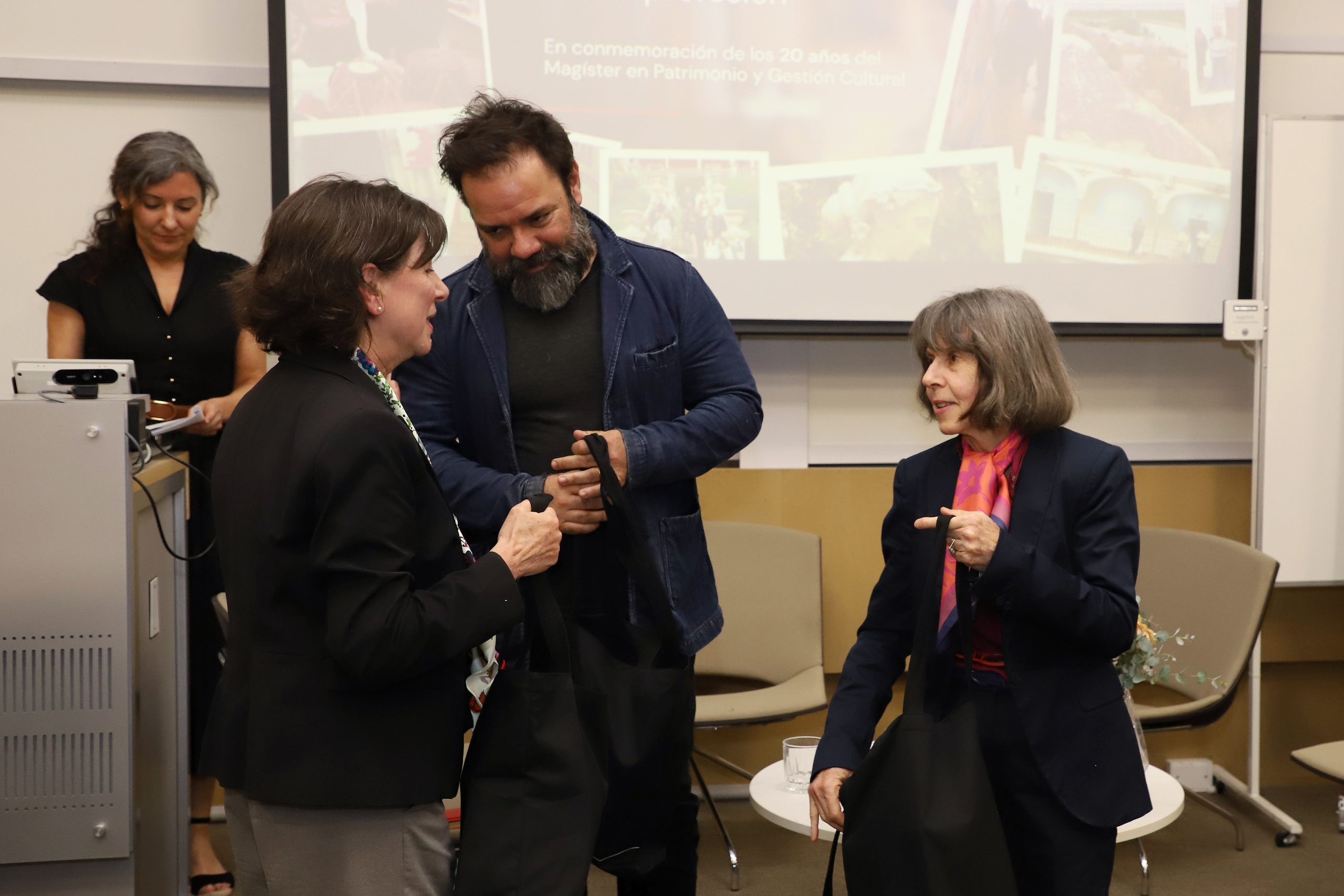 En su discurso inicial, la directora del programa, Marisol Richter, repasó las etapas del magíster, los ajustes curriculares y la creciente red de instituciones colaboradoras que han acompañado el desarrollo del programa. Destacó que más de 220 profesionales se han graduado en estos 20 años, trabajando hoy en museos, municipalidades, centros de investigación, organismos públicos, fundaciones, espacios culturales y proyectos independientes. Subrayó también que el equipo está preparando un libro —desarrollado junto a Editorial RIL— que abordará la evolución de la gestión del patrimonio cultural en Chile, los cambios normativos, el rol de las mujeres en el sector y los desafíos interdisciplinarios del área, además de incluir testimonios de alumni.