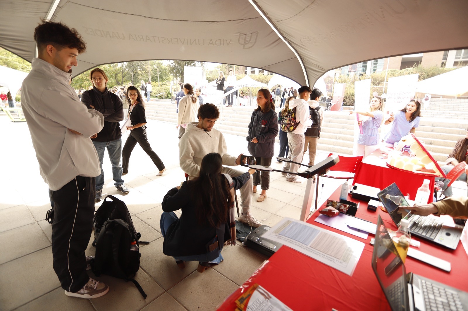 La Facultad de Odontología entregó información sobre cáncer oral y el riesgo de los vapeadores. Vida Universitaria realizó tests de evaluación de condiciones físicas. La ONG No Chat orientó en materia de conducción vial responsable. Por su parte, la Escuela de Kinesiología realizó pruebas para medir los índices de fuerza en las manos y en los pies, Terapia Ocupacional realizó test de evaluación cognitiva, y entregaron consejos para mantener la mente activa y diseñar un plan de estudios. Alumnos y profesoras de Nutrición y Dietética enseñaron sobre inocuidad alimentaria, cuánto duran los alimentos en el refrigerador y orientaron sobre etiquetado nutricional, entre otras materias.
