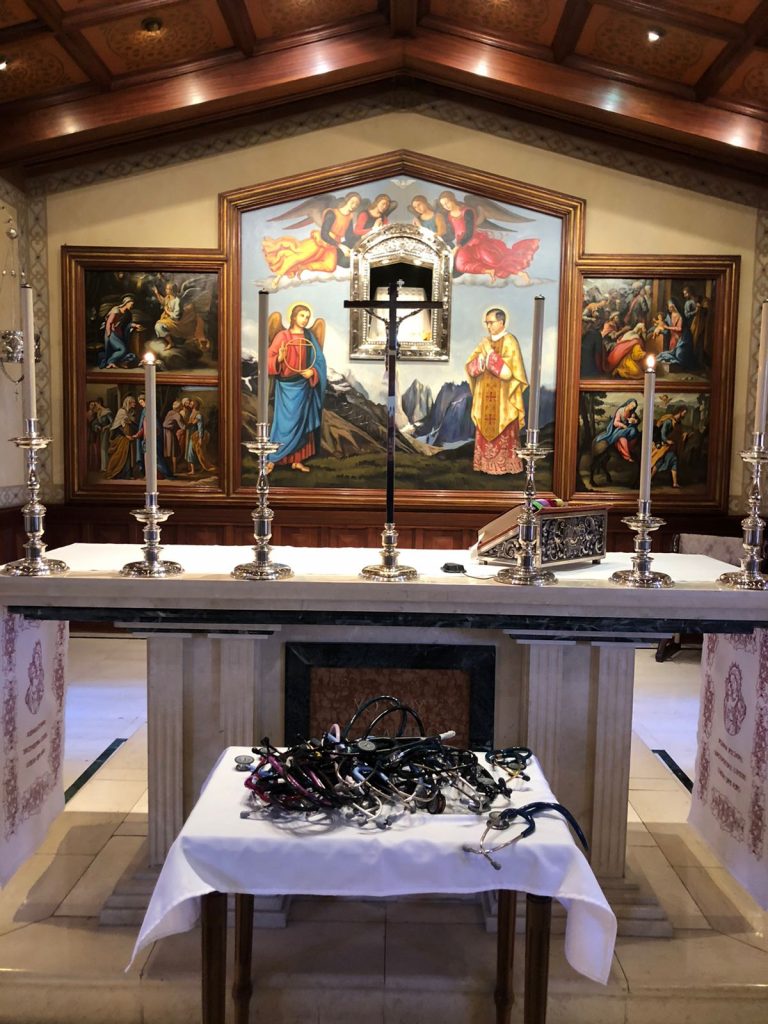 Existe una bendición especial para los objetos de trabajo, que en el caso del médico es el fonendo lo que busca que el hacer de nuestra práctica clínica esté llena del Espíritu Santo, por medio de la bendición que actúa a través del fonendo“, comenta Trinidad Kast, que junto con Felipe Di Biase son los jefes de la Pastoral de Medicina .