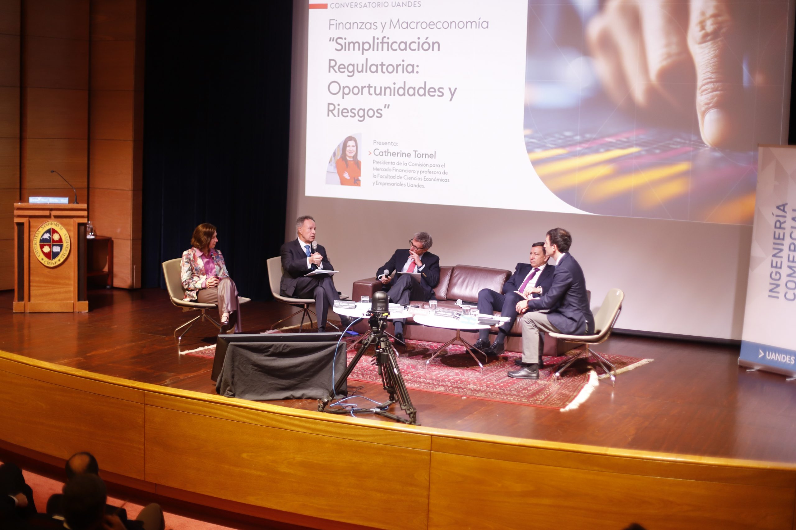 La actividad contó con la participación de Catherine Tornel, presidenta de la Comisión para el Mercado Financiero (CMF) y profesora de la Facultad, quien estuvo a cargo de la exposición principal. Posteriormente, se desarrolló un panel de conversación moderado por el profesor Mauricio Larraín, en el que participaron José Manuel Mena, presidente de la Asociación de Bancos e Instituciones Financieras; Luis Alberto Letelier, presidente de la Asociación de Administradoras de Fondos de Inversión; y Marcelo Mosso, director ejecutivo de la Asociación de Aseguradores de Chile.