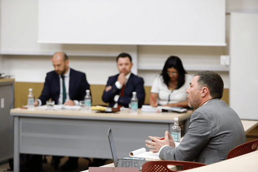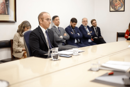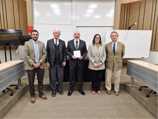 Tribunal evaluador integrado por los profesores doctores Pedro Robles Latorre (CEU Universidad de San Pablo, Madrid), Daniela Jarufe Contreras (Universidad de Talca) y Andrés Erbetta Mattig (UANDES)